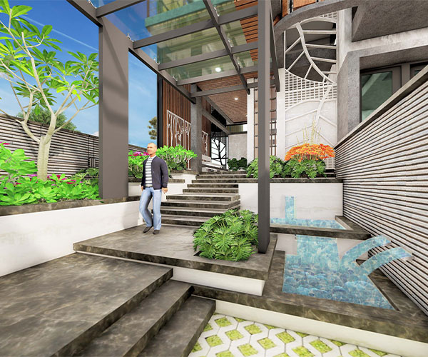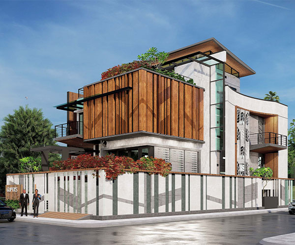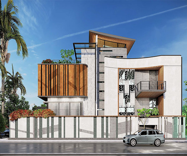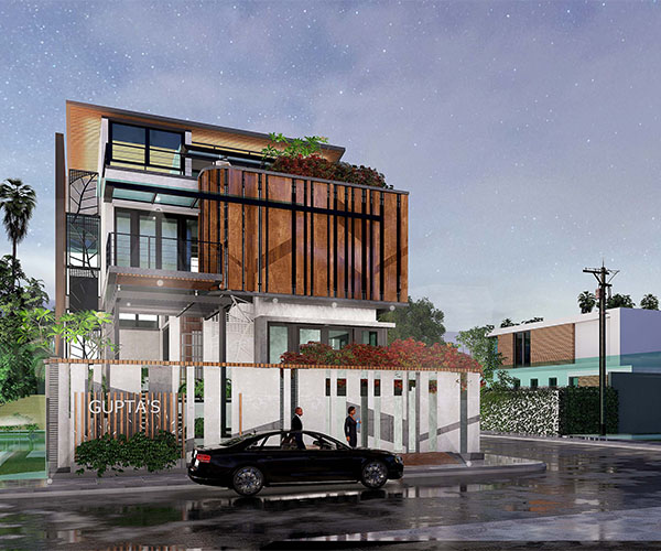 In response to the client's desire for an elevated home while maintaining a connection with nature, we conceived a unique dwelling that seamlessly integrates indoor and outdoor living. The result is a house with a stepped garden intricately connected to the drawing room, forming a harmonious link between the interior and the lush surroundings. The pièce de resistance is a triple-height skylight that not only floods the space with natural light but also introduces a captivating sense of drama. This architectural innovation not only uplifts the physical structure but elevates the entire living experience, creating a dynamic interplay between modern luxury and the serene embrace of a connected garden. Moreover, the house's unique positioning along two side roads transforms its facade from linear to gently curved, elevating its aesthetic appeal and creating a captivating fusion of modern luxury and the tranquil allure of a connected garden.