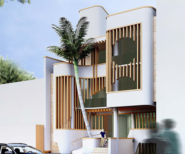 In response to the client's desire for an elevated home while maintaining a connection with nature, we conceived a unique dwelling that seamlessly integrates indoor and outdoor living. The result is a house with a stepped garden intricately connected to the drawing room, forming a harmonious link between the interior and the lush surroundings. The pièce de resistance is a triple-height skylight that not only floods the space with natural light but also introduces a captivating sense of drama. This architectural innovation not only uplifts the physical structure but elevates the entire living experience, creating a dynamic interplay between modern luxury and the serene embrace of a connected garden. Moreover, the house's unique positioning along two side roads transforms its facade from linear to gently curved, elevating its aesthetic appeal and creating a captivating fusion of modern luxury and the tranquil allure of a connected garden.