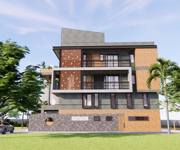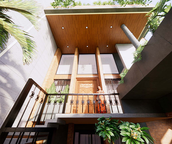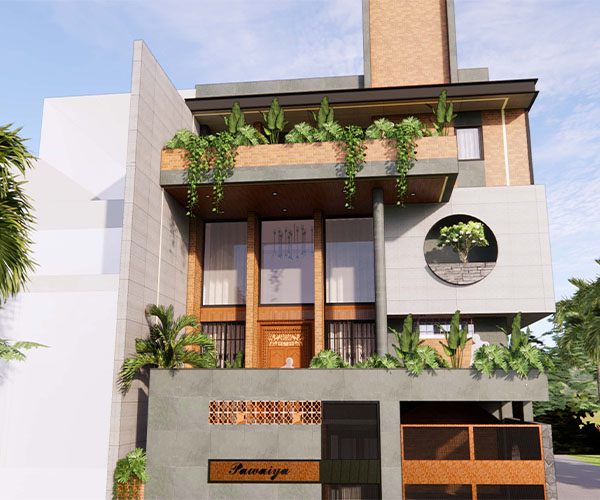 In response to the client's desire for an elevated home while maintaining a connection with nature, we conceived a unique dwelling that seamlessly integrates indoor and outdoor living. The result is a house with a stepped garden intricately connected to the drawing room, forming a harmonious link between the interior and the lush surroundings. The pièce de resistance is a triple-height skylight that not only floods the space with natural light but also introduces a captivating sense of drama. This architectural innovation not only uplifts the physical structure but elevates the entire living experience, creating a dynamic interplay between modern luxury and the serene embrace of a connected garden. Moreover, the house's unique positioning along two side roads transforms its facade from linear to gently curved, elevating its aesthetic appeal and creating a captivating fusion of modern luxury and the tranquil allure of a connected garden.